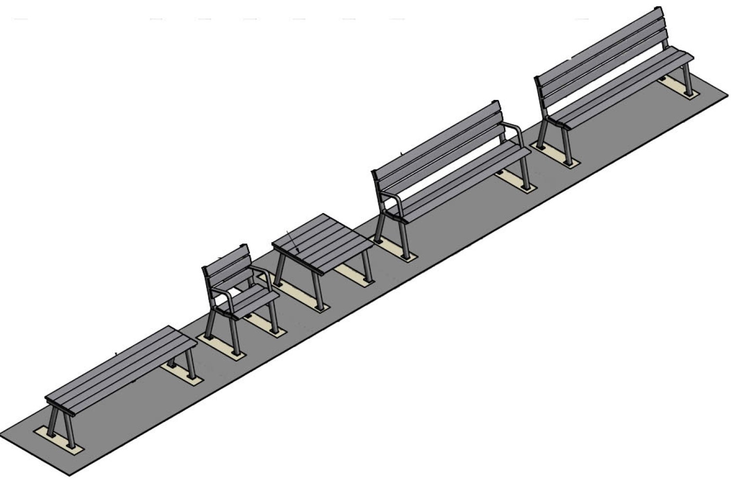 Banc Héritage avec accoudoirs en métal